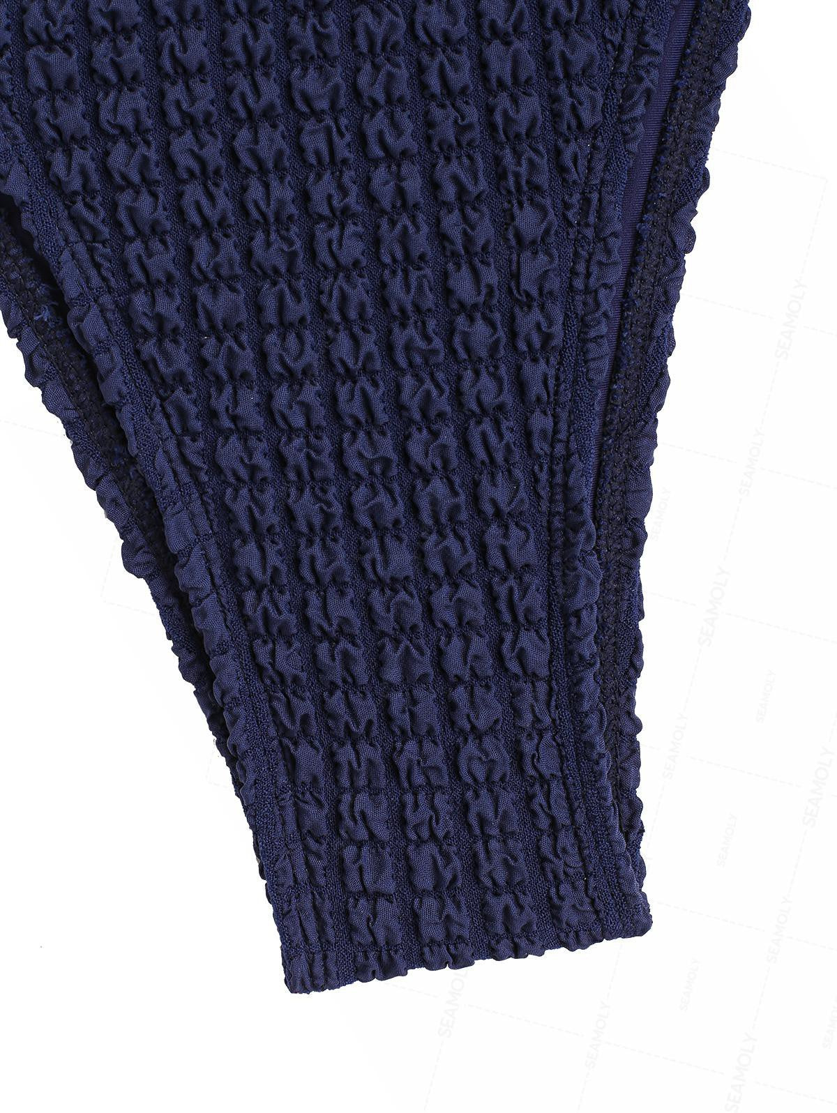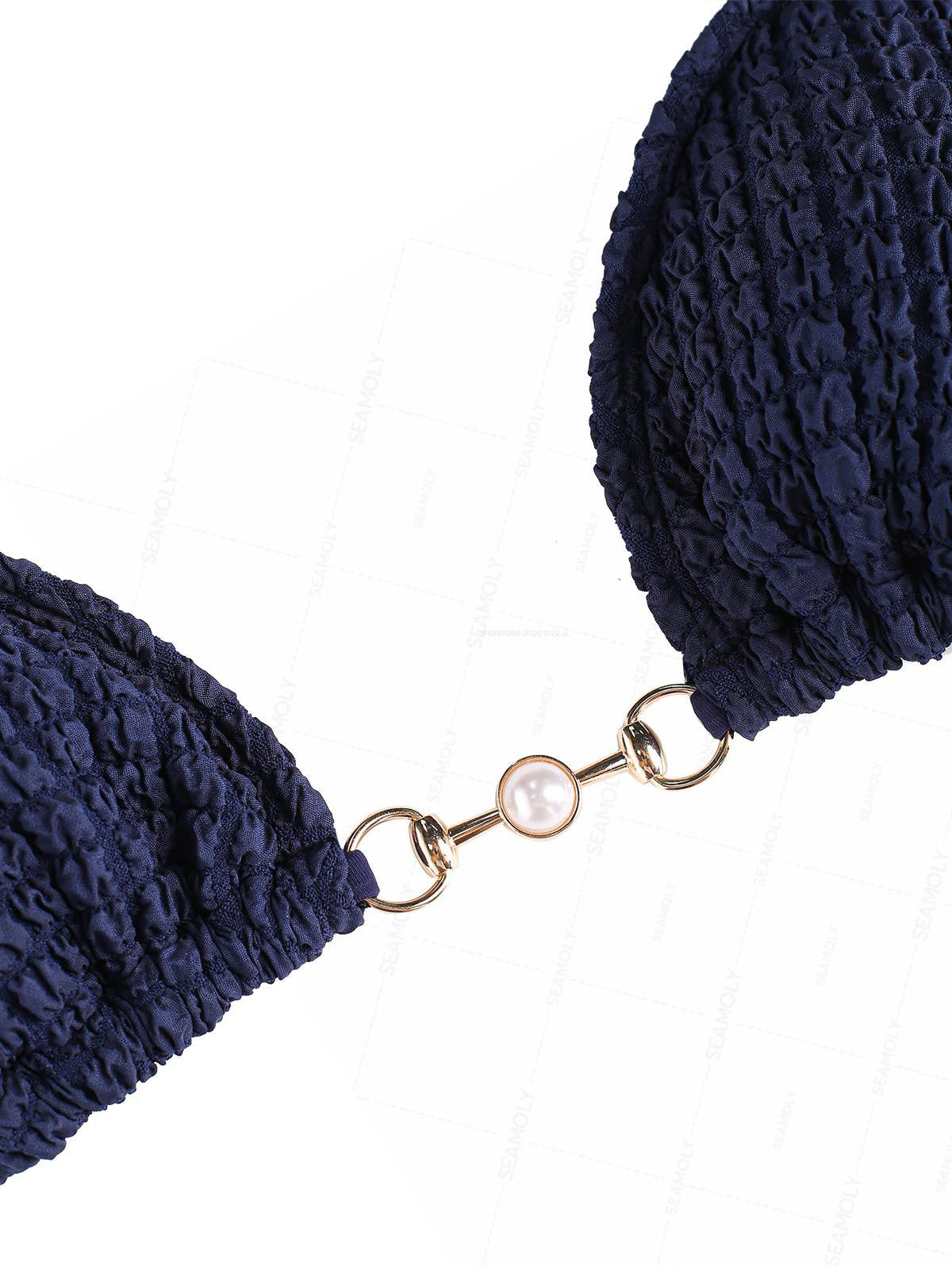 Seamolly Textured Faux Pearl Decor Halter Triangle Tie Side Bikini Set
