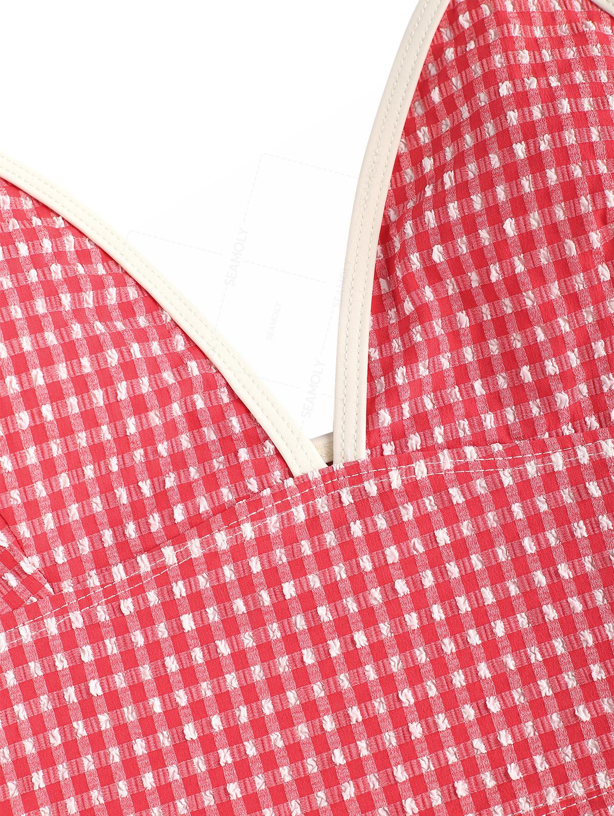 Seamolly Gingham Textured Halter Tank Top & Tie Side Boy Short Bottom Tankini Set