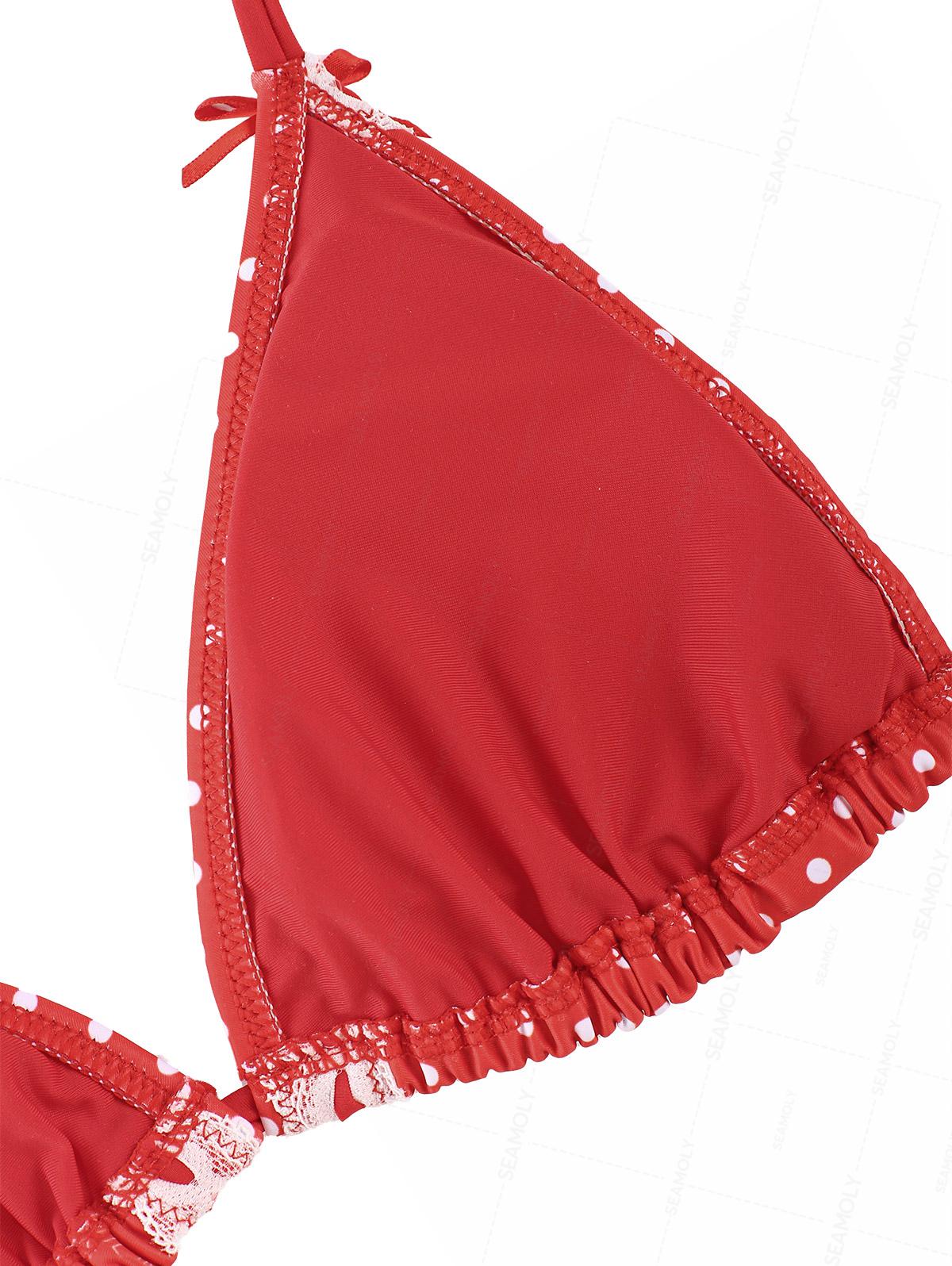 Seamolly Christmas Vintage Polka Dot Lace Bowknot Halter Triangle Tie Side Bikini Set