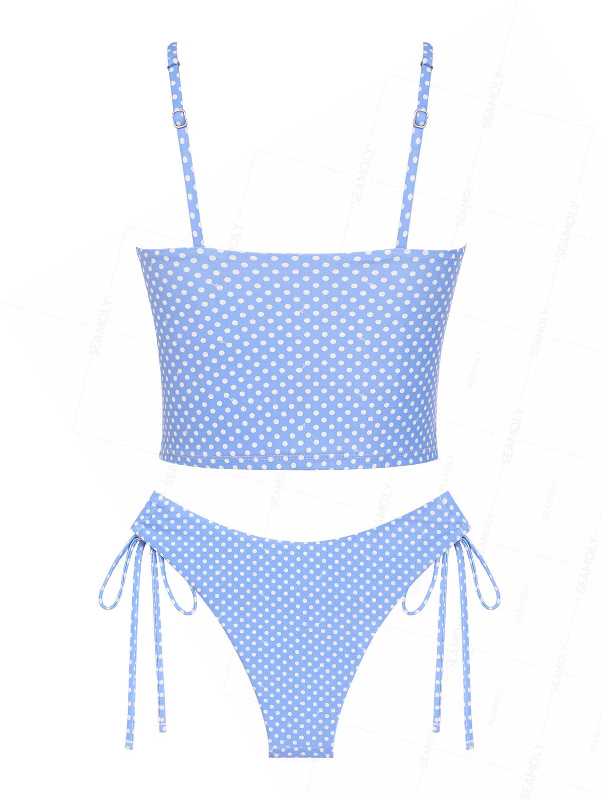 Seamolly Polka Dot Ruched Bowknot Cinched Tie Side Tankini Set